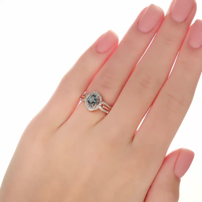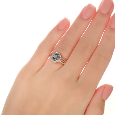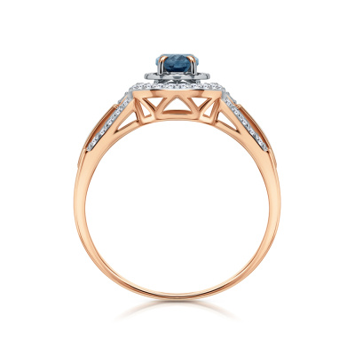 Кольцо с 42 бриллиантами природными, 0.17 карат, огранка круг 17 граней, цвет 2, чистота 2; 1 топазом лондон природным, 0.53 карат; Розовое золото 585 пробы.