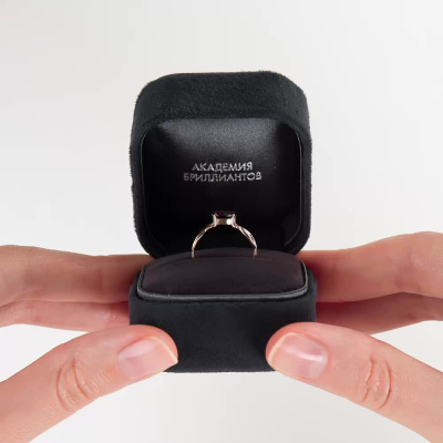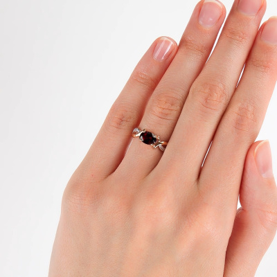 Кольцо с 6 бриллиантами природными, 0.02 карат, огранка круг 17 граней, цвет 2, чистота 2; 1 гранатом природным, 0.95 карат; Розовое золото 585 пробы.