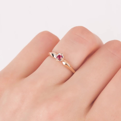 Кольцо с 1 рубином природным, 0.08 карат, цвет 2, чистота 2, тип огранки В; Розовое золото 585 пробы.