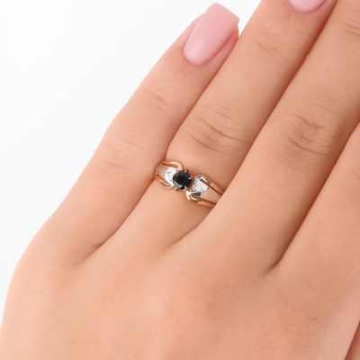 Кольцо с 2 бриллиантами природными, 0.009 карат, огранка круг 57 граней, цвет 4, чистота 6, тип огранки А; 1 сапфиром природным, 0.26 карат, цвет 2, чистота 2, тип огранки В; Розовое золото 585 пробы.