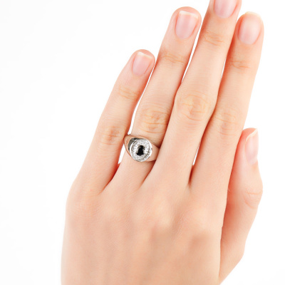 Кольцо с 20 бриллиантами природными, 0.07 карат, огранка круг 17 граней, цвет 2, чистота 2, тип огранки А; 6 бриллиантами природными, 0.01 карат, огранка круг 17 граней, цвет 2, чистота 2, тип огранки А; 1 сапфиром природным, 0.42 карат, цвет 2, чистота 2, тип огранки Б; Белое золото 585 пробы.