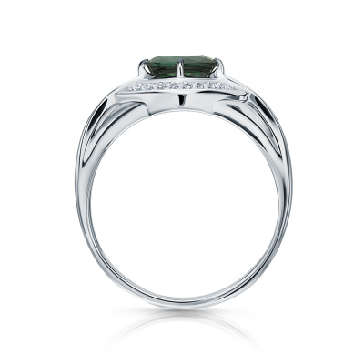 Кольцо с 18 бриллиантами природными, 0.06 карат, огранка круг 17 граней, цвет 2, чистота 2, тип огранки А; 1 сапфиром природным, 0.55 карат, цвет 2, чистота 2, тип огранки Б; Белое золото 585 пробы.