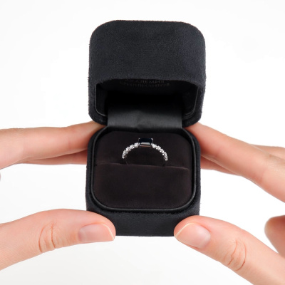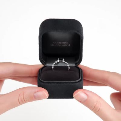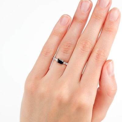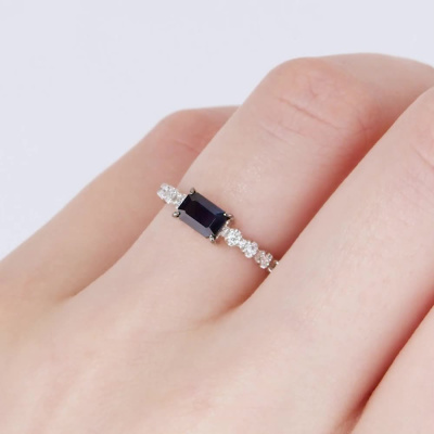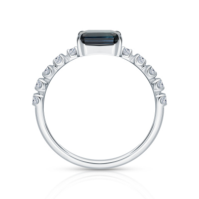 Кольцо с 10 бриллиантами природными, 0.14 карат, огранка круг 57 граней, цвет 3, чистота 6, тип огранки А; 1 сапфиром природным, 0.68 карат, цвет 2, чистота 2, тип огранки Б; Белое золото 585 пробы.