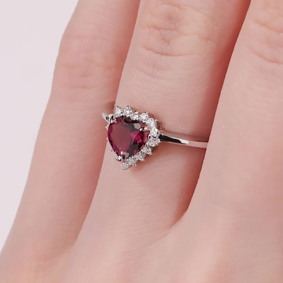 Кольцо с 16 бриллиантами природными, 0.16 карат, огранка круг 57 граней, цвет 3, чистота 5, тип огранки А; 1 турмалином розовым природным, 0.66 карат, тип огранки А; Белое золото 585 пробы.