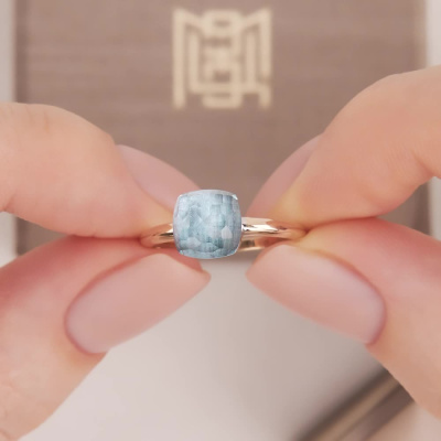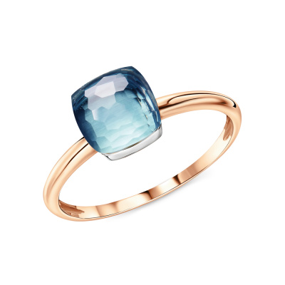 Кольцо с 1 топазом скай природным, 4.59 карат; Розовое золото 585 пробы.