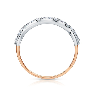 Кольцо с 10 бриллиантами природными, 0.09 карат, огранка круг 57 граней, цвет 4, чистота 5, тип огранки А; 4 бриллиантами природными, 0.03 карат, огранка круг 57 граней, цвет 4, чистота 5, тип огранки А; Розовое золото 585 пробы.