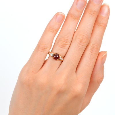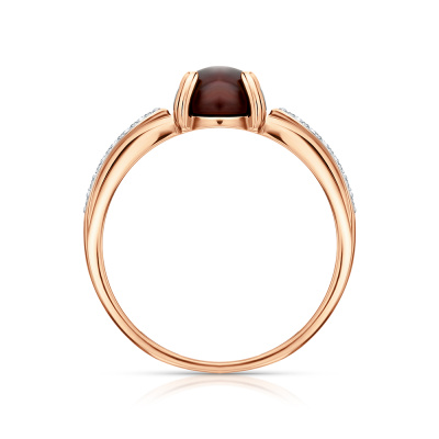 Кольцо с 14 бриллиантами природными, 0.06 карат, огранка круг 17 граней, цвет 2, чистота 2, тип огранки А; 1 гранатом природным, 1.69 карат; Розовое золото 585 пробы.