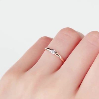 Кольцо с 1 бриллиантом природным, 0.01 карат, огранка круг 57 граней, цвет 3, чистота 6, тип огранки А; Розовое золото 585 пробы.