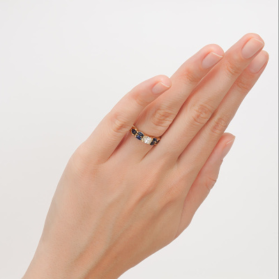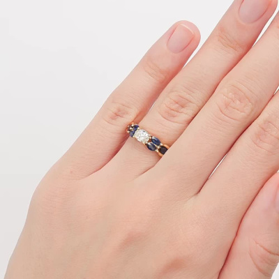Золотое кольцо с бриллиантами природными и сапфирами природными