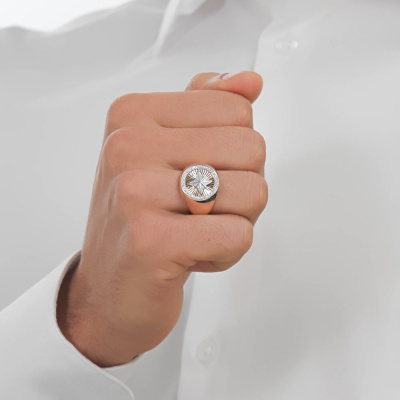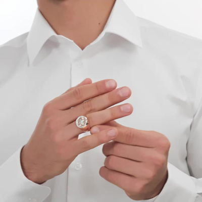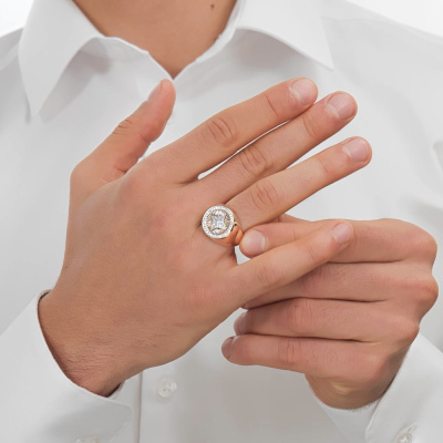 Кольцо с 43 бриллиантами природными, 0.2 карат, огранка круг 17 граней, цвет 2, чистота 2; Розовое и белое золото 585 пробы.