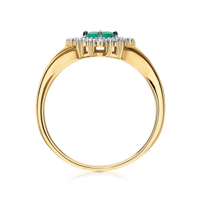 Кольцо с 12 бриллиантами природными, 0.27 карат, огранка круг 57 граней, цвет 3, чистота 6, тип огранки А; 1 изумрудом природным, 0.23 карат, цвет 3, чистота 3, тип огранки В; Желтое золото 585 пробы.