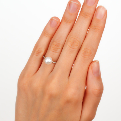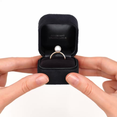 Кольцо с 16 бриллиантами природными, 0.07 карат, огранка круг 17 граней, цвет 2, чистота 2, тип огранки А; 1 жемчугом пресноводным культивированным белым; Розовое золото 585 пробы.