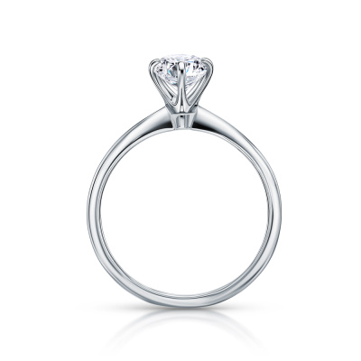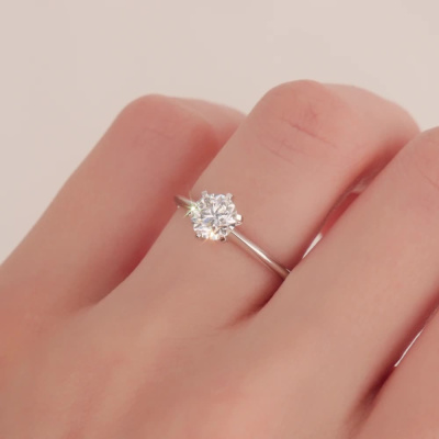 Кольцо с 1 бриллиантом природным, 0.9 карат, огранка круг 57 граней, цвет 3, чистота 7, тип огранки А; Белое золото 585 пробы.