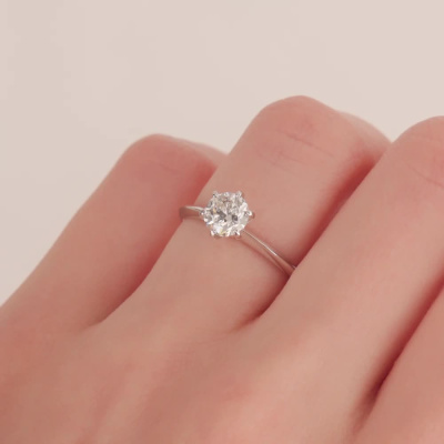 Кольцо с 1 бриллиантом природным, 0.91 карат, огранка круг 57 граней, цвет 4, чистота 4, тип огранки А; Белое золото 585 пробы.
