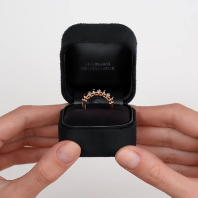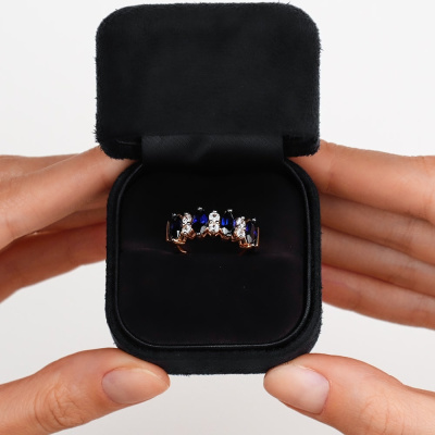 Кольцо с 4 сапфирами синтетическими, 1.76 карат; 6 сапфирами бесцветными природными, 0.47 карат; Розовое золото 585 пробы.