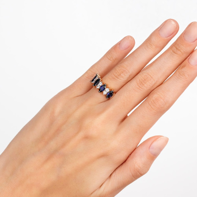 Золотое кольцо с сапфирами выращенными и сапфирами природными