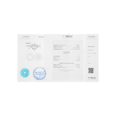 Кольцо с 1 бриллиантом природным, 1.2 карат, огранка круг 57 граней, цвет 2, чистота 3, тип огранки А; Белое золото 585 пробы.