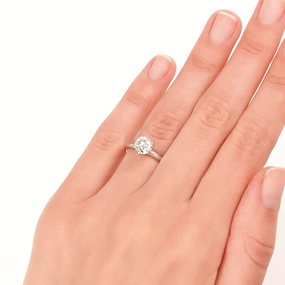 Кольцо с 1 бриллиантом природным, 1.2 карат, огранка круг 57 граней, цвет 4, чистота 5, тип огранки А; Белое золото 585 пробы.