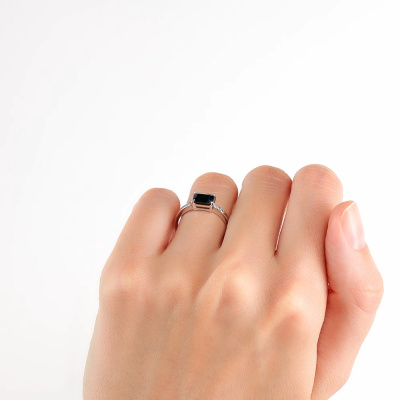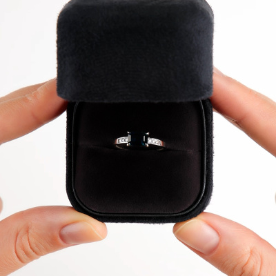 Кольцо с 2 бриллиантами природными, 0.02 карат, огранка круг 57 граней, цвет 3, чистота 6, тип огранки А; 2 бриллиантами природными, 0.01 карат, огранка круг 57 граней, цвет 3, чистота 6, тип огранки А; 2 бриллиантами природными, 0.01 карат, огранка круг 57 граней, цвет 3, чистота 6, тип огранки А; 1 сапфиром природным, 1.06 карат, цвет 2, чистота 2, тип огранки Б; Белое золото 585 пробы.