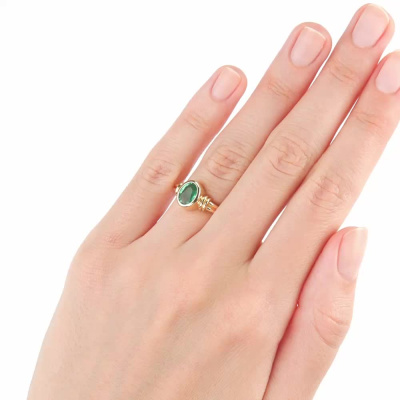 Кольцо с 1 изумрудом природным, 1.02 карат, цвет 3, чистота 3, тип огранки Б; Желтое золото 585 пробы.