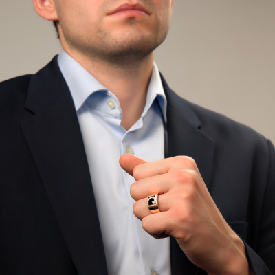 Кольцо с 1 изумрудом природным, 0.01 карат, цвет 3, чистота 3, тип огранки В; 1 ониксом черным природным; Розовое золото 585 пробы.