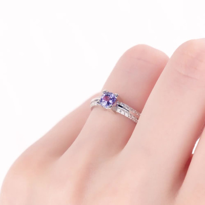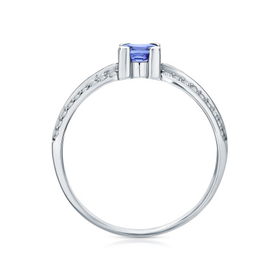Кольцо с 36 бриллиантами природными, 0.17 карат, огранка круг 17 граней, цвет 2, чистота 2, тип огранки А; 1 танзанитом природным, 0.54 карат, тип огранки В; Белое золото 585 пробы.