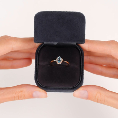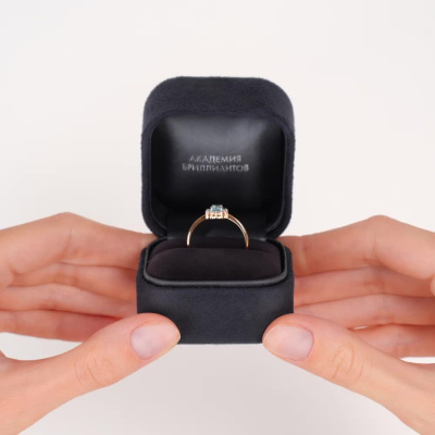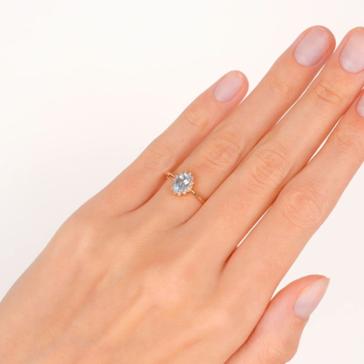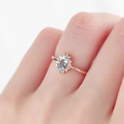 Кольцо с 14 бриллиантами природными, 0.06 карат, огранка круг 17 граней, цвет 2, чистота 2, тип огранки А; 1 топазом скай природным, 0.53 карат; Розовое золото 585 пробы.