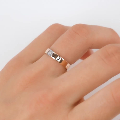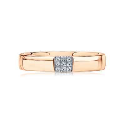 Кольцо с 9 бриллиантами природными, 0.04 карат, огранка круг 17 граней, цвет 2, чистота 2, тип огранки А; Розовое золото 585 пробы.