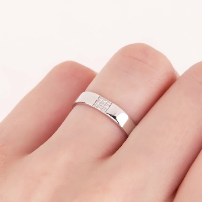 Кольцо с 9 бриллиантами природными, 0.04 карат, огранка круг 17 граней, цвет 2, чистота 2, тип огранки А; Белое золото 585 пробы.