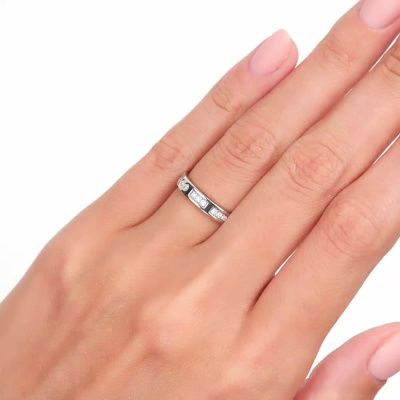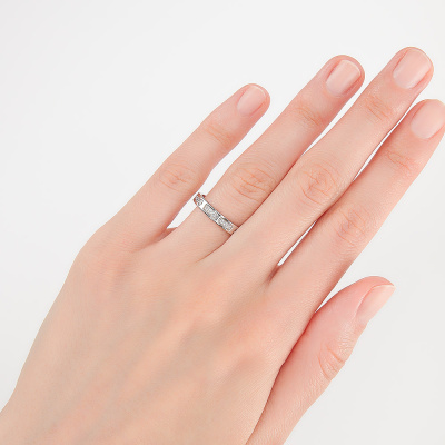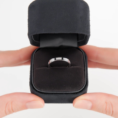 Кольцо с 8 бриллиантами природными, 0.11 карат, огранка круг 57 граней, цвет 3, чистота 6, тип огранки А; 15 бриллиантами природными, 0.1 карат, огранка круг 57 граней, цвет 3, чистота 6, тип огранки А; эмаль черная; Белое золото 585 пробы.
