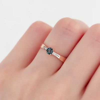 Кольцо с 2 бриллиантами природными, 0.01 карат, огранка круг 17 граней, цвет 2, чистота 2, тип огранки А; 1 топазом лондон природным, 0.3 карат; Розовое золото 585 пробы.