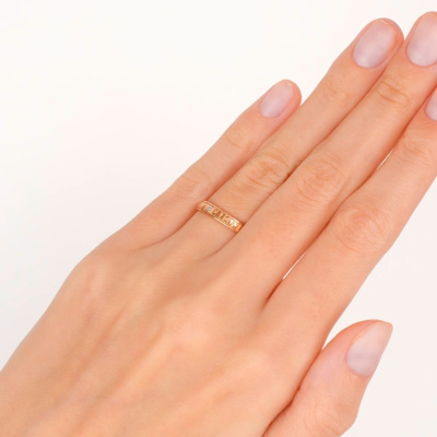 Кольцо с 3 бриллиантами природными, 0.02 карат, огранка круг 17 граней, цвет 2, чистота 2, тип огранки А; Розовое золото 585 пробы.