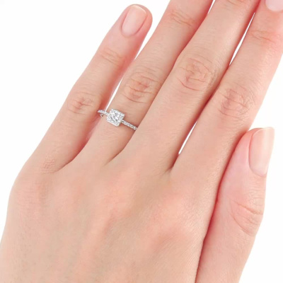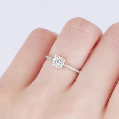Кольцо с 1 бриллиантом природным, 0.06 карат, огранка круг 57 граней, цвет 3, чистота 6, тип огранки А; 30 бриллиантами природными, 0.12 карат, огранка круг 57 граней, цвет 3, чистота 6, тип огранки А; Платина 950 пробы.