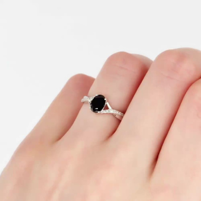 Кольцо с 18 бриллиантами природными, 0.05 карат, огранка круг 17 граней, цвет 2, чистота 2, тип огранки А; 1 сапфиром природным, 0.96 карат, цвет 2, чистота 2, тип огранки Б; Белое золото 585 пробы.