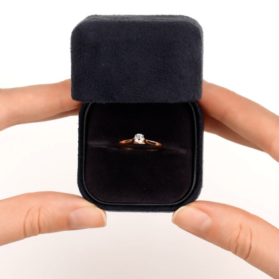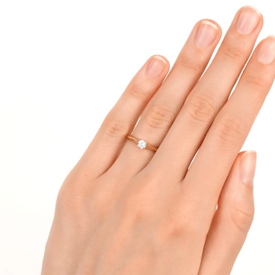 Кольцо с 1 бриллиантом природным, 0.2 карат, огранка круг 57 граней, цвет 3, чистота 6, тип огранки А; Розовое золото 585 пробы.
