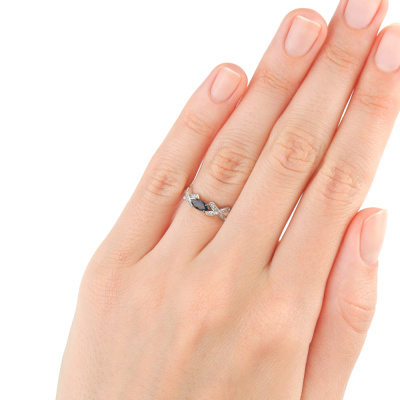 Кольцо с 22 бриллиантами природными, 0.04 карат, огранка круг 17 граней, цвет 2, чистота 2, тип огранки А; 1 сапфиром природным, 0.28 карат, цвет 2, чистота 2, тип огранки Б; Белое золото 585 пробы.