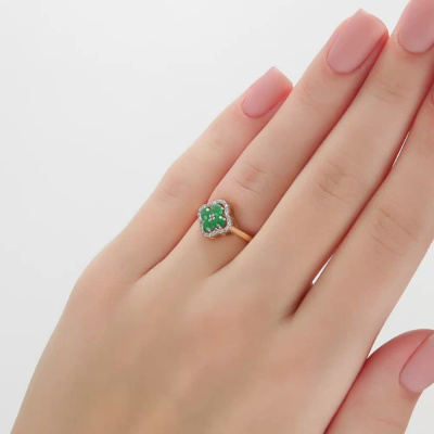 Золотое кольцо с бриллиантами природными и изумрудами природными