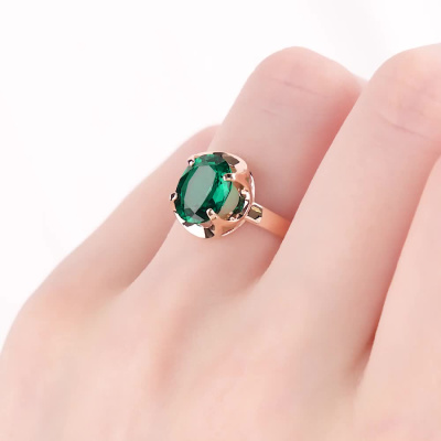 Кольцо с 1 гидротермальным изумрудом, 2.28 карат; Розовое золото 585 пробы.