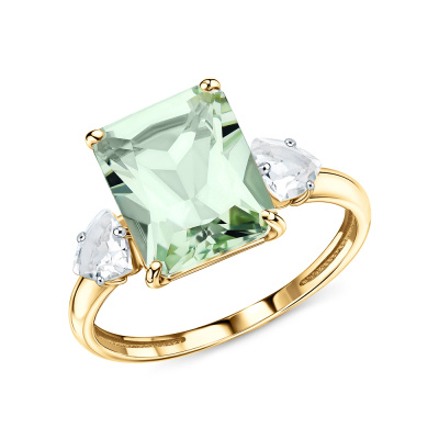 Золотое кольцо с празиолит природными и топазами природными