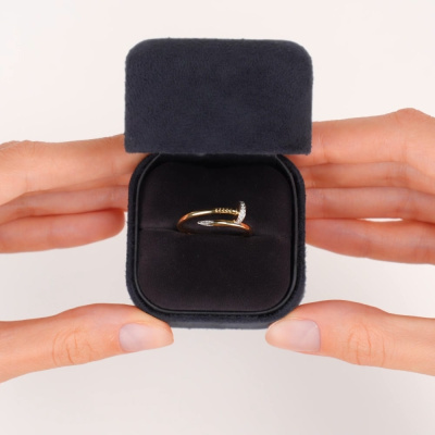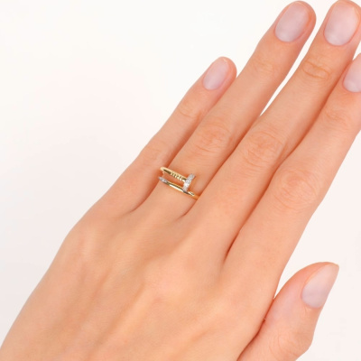 Кольцо с 11 бриллиантами природными, 0.03 карат, огранка круг 17 граней, цвет 2, чистота 2, тип огранки А; 2 бриллиантами природными, 0.005 карат, огранка круг 17 граней, цвет 2, чистота 2, тип огранки А; Желтое золото 585 пробы.