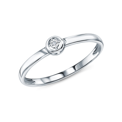Кольцо с 1 бриллиантом природным, 0.002 карат, огранка круг 17 граней, цвет 2, чистота 2, тип огранки А; Белое золото 585 пробы.