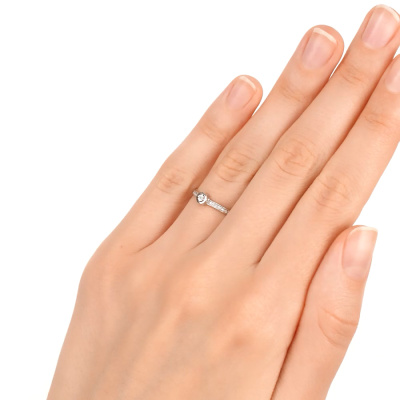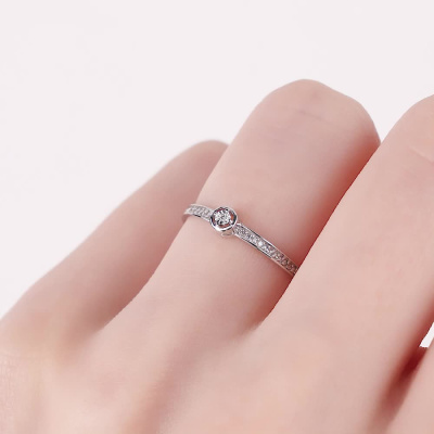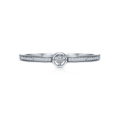 Кольцо с 1 бриллиантом природным, 0.002 карат, огранка круг 17 граней, цвет 2, чистота 2, тип огранки А; 22 бриллиантами природными, 0.04 карат, огранка круг 17 граней, цвет 2, чистота 2, тип огранки А; Белое золото 585 пробы.