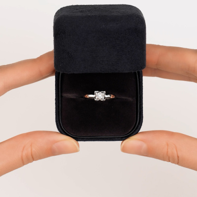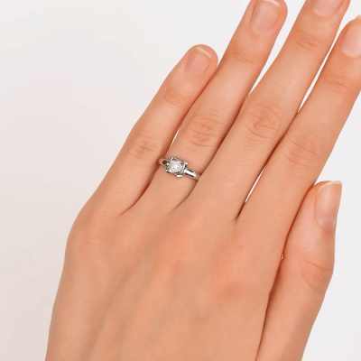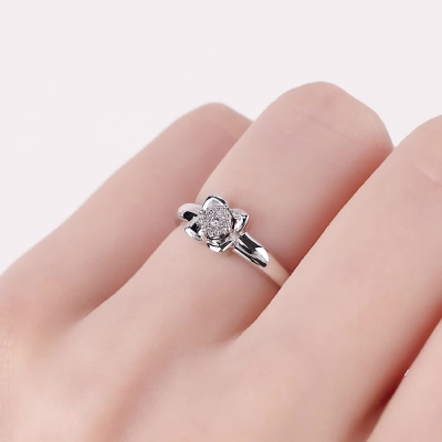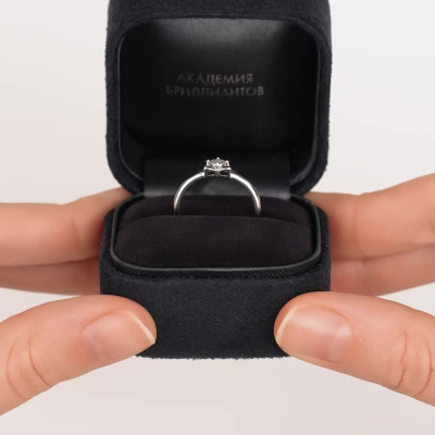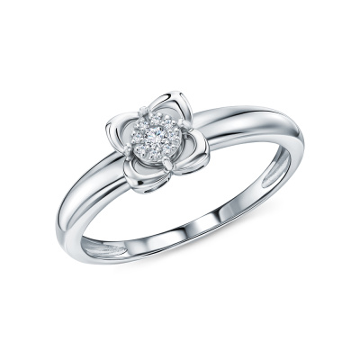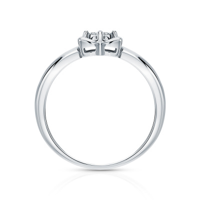 Кольцо с 1 бриллиантом природным, 0.01 карат, огранка круг 57 граней, цвет 3, чистота 6, тип огранки А; 8 бриллиантами природными, 0.01 карат, огранка круг 17 граней, цвет 2, чистота 2, тип огранки А; Белое золото 585 пробы.