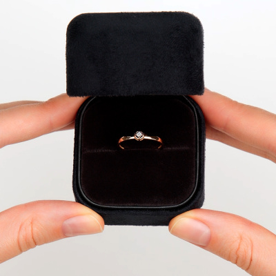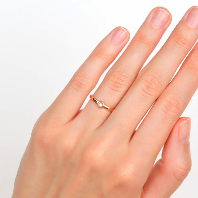 Кольцо с 1 бриллиантом природным, 0.002 карат, огранка круг 17 граней, цвет 2, чистота 2, тип огранки А; Розовое и белое золото 585 пробы.
