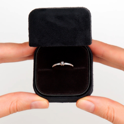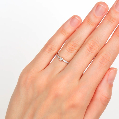 Кольцо с 1 бриллиантом природным, 0.002 карат, огранка круг 17 граней, цвет 2, чистота 2, тип огранки А; 22 бриллиантами природными, 0.04 карат, огранка круг 17 граней, цвет 2, чистота 2, тип огранки А; Розовое и белое золото 585 пробы.