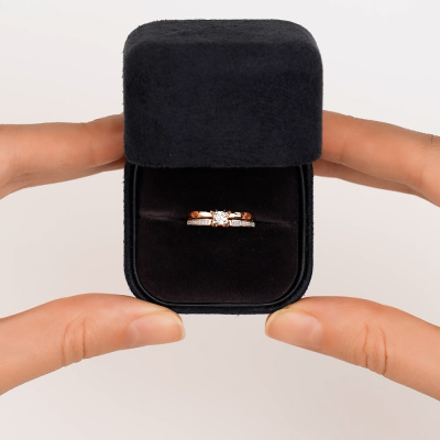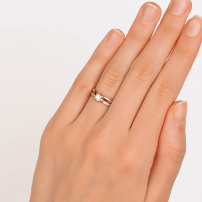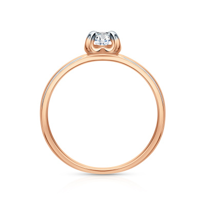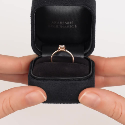 Кольцо с 1 бриллиантом природным, 0.16 карат, огранка круг 57 граней, цвет 3, чистота 6, тип огранки А; 22 бриллиантами природными, 0.05 карат, огранка круг 17 граней, цвет 2, чистота 2, тип огранки А; Розовое золото 585 пробы.