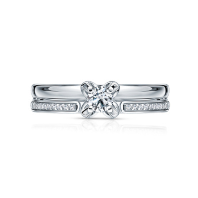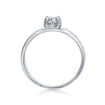 Кольцо с 1 бриллиантом природным, 0.16 карат, огранка круг 57 граней, цвет 3, чистота 6, тип огранки А; 22 бриллиантами природными, 0.05 карат, огранка круг 17 граней, цвет 2, чистота 2, тип огранки А; Белое золото 585 пробы.