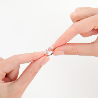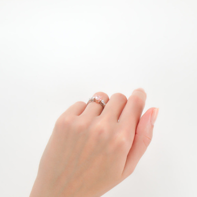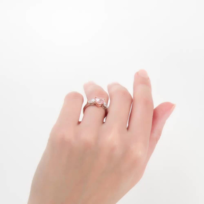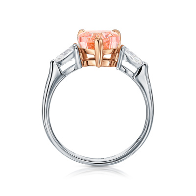 Кольцо с 1 бриллиантом выращенным, 1.41 карат, огранка сердце 57 граней, цвет Розовый, чистота 5, тип огранки А; 2 бриллиантами выращенными, 0.38 карат, огранка груша 56 граней, цвет 3, чистота 5, тип огранки А; Розовое и белое золото 585 пробы.
