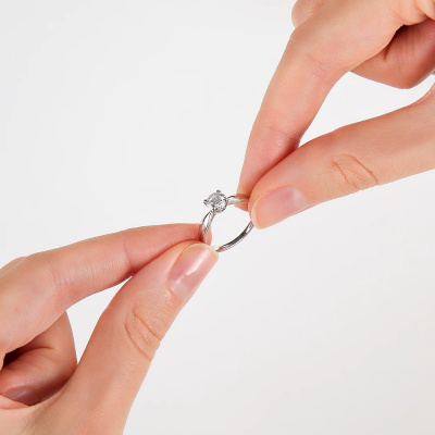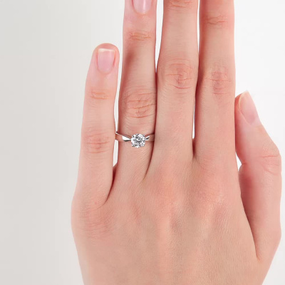 Кольцо с 1 бриллиантом выращенным, 0.74 карат, огранка круг 57 граней, цвет 3, чистота 6, тип огранки А; Белое золото 585 пробы.