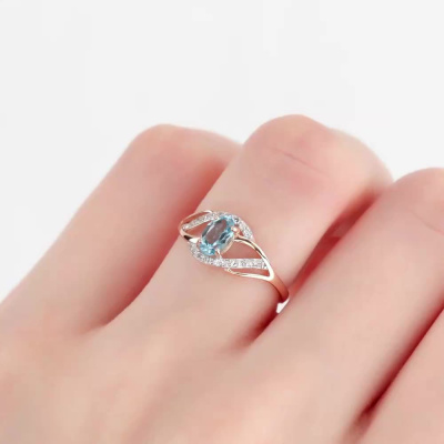Кольцо с 20 бриллиантами природными, 0.08 карат, огранка круг 17 граней, цвет 2, чистота 2, тип огранки А; 1 топазом свисс природным, 0.53 карат; Розовое золото 585 пробы.